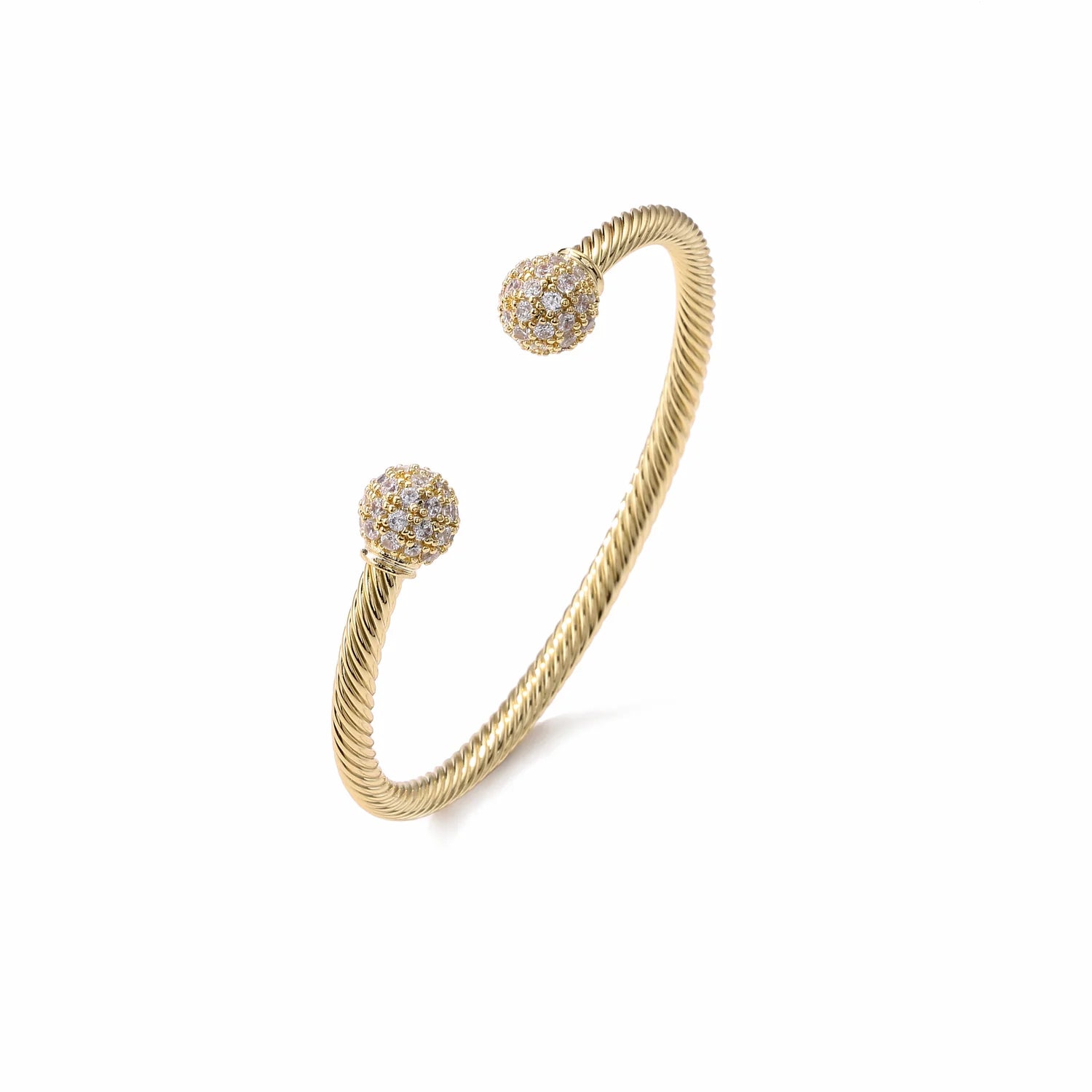Diamond Ball Torque Bangle Bracelet (Gold Filled)