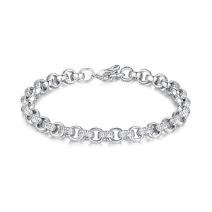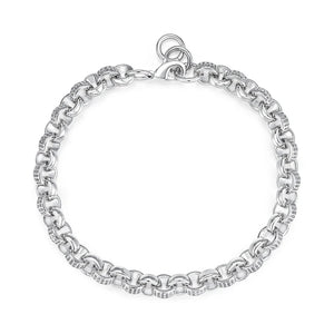 8MM Alternate Diamond Patterned Belcher Bracelet (White Gold Filled)
