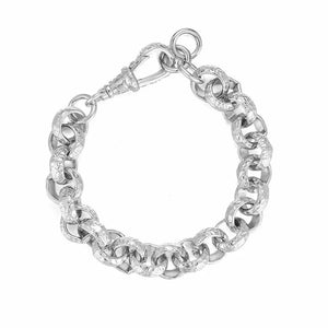 Patterned Belcher BRACELET 12MM Albert Clasp (White Gold Filled)