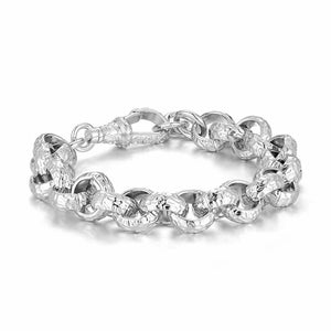 12MM Alternate Diamond Patterned Belcher Bracelet (White Gold Filled)