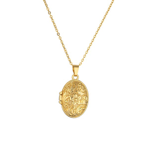 St Christopher Flower Mount Pendant Belcher Chain - Gold Filled