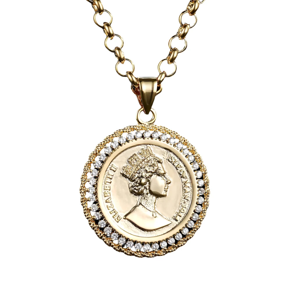 - Gold Filled chain With Queen Elizabeth Coin Pendant