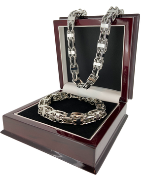 12MM Patterned Belcher Chain and Bracelet Set (White Gold Filled)